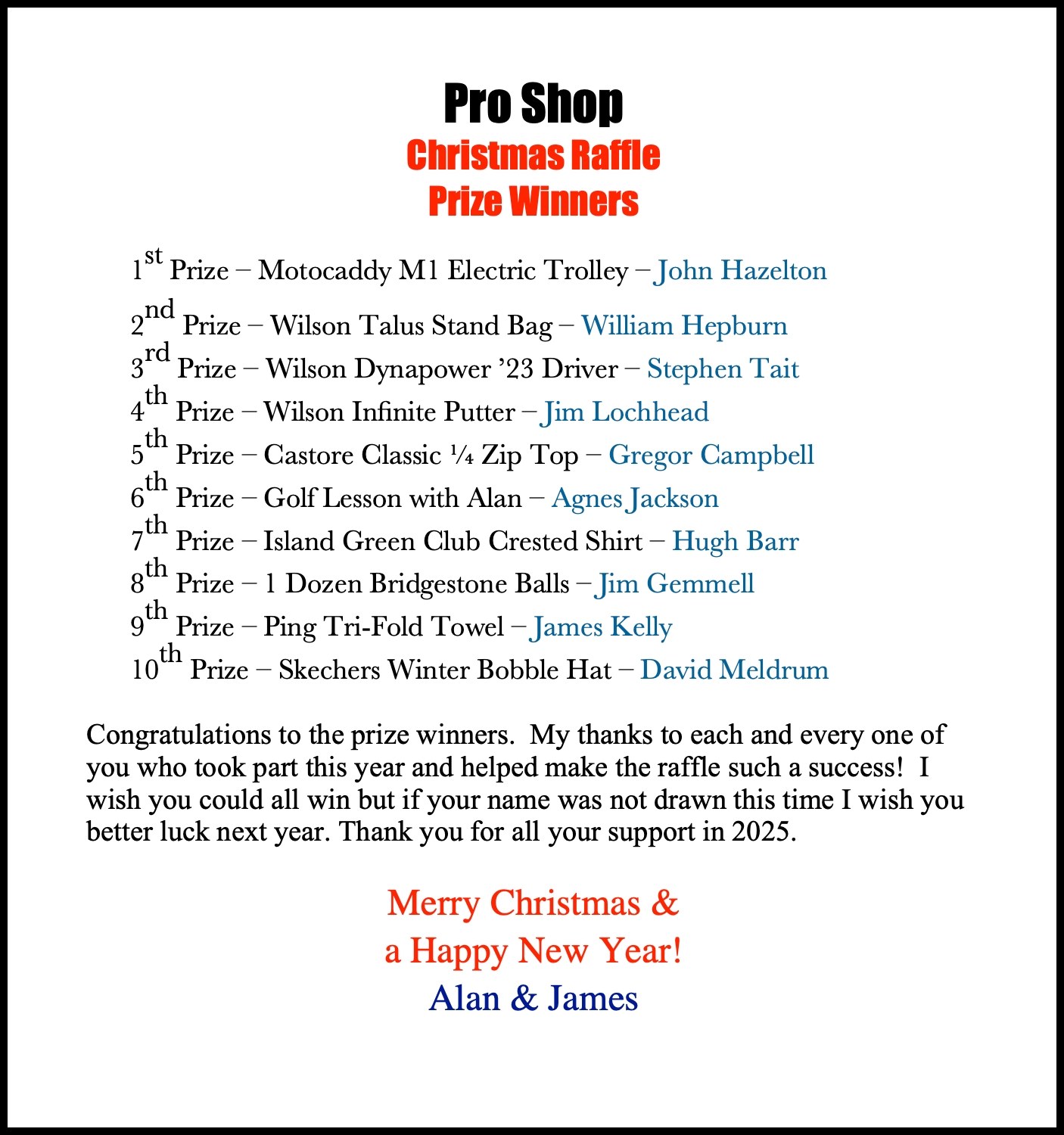 Alan and James have just completed this year's Draw!